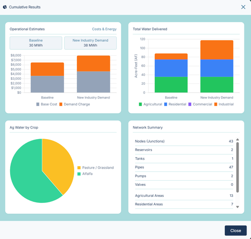 One of IAMDD's most powerful features is its ability to test "What-If" scenarios without permanently altering your baseline project data. This allows you to rapidly evaluate alternatives like drought constraints, future municipal expansions, or hardware upgrades.