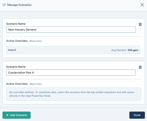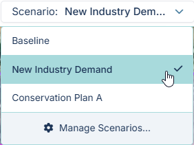 - Click Add Scenario to build a new alternative reality (e.g., "Future Industry Demand" or "Conservation Plan A"). You can maintain up to three distinct custom scenarios alongside your baseline.