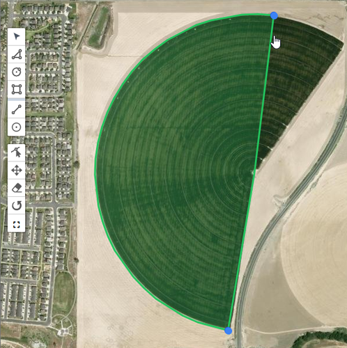 - Polygon / Circle / Rectangle: Used to define the boundaries of your demand areas (e.g., drawing the perimeter of an alfalfa field or a residential neighborhood).