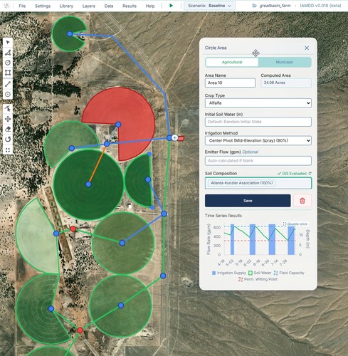 - Dynamic Agronomic Demands: Stop guessing your base demands. IAMDD pulls live soils data (SSURGO) and tracks the daily Soil Water Balance using actual evapotranspiration (ETo) to trigger irrigation events exactly when the crops need them.